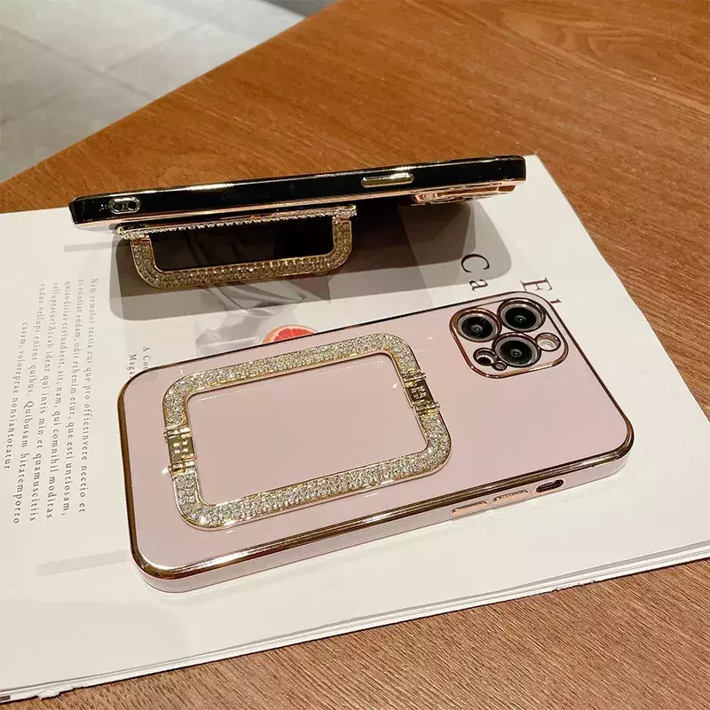 Características: Capinha Soft Silicone premium alto brilho, Flexível com revestimento de luxo e suporte de dedo, banhada na cor ouro com pedraria brilhante, assista vídeos, filmes e faça selfie com mais segurança e praticidade.