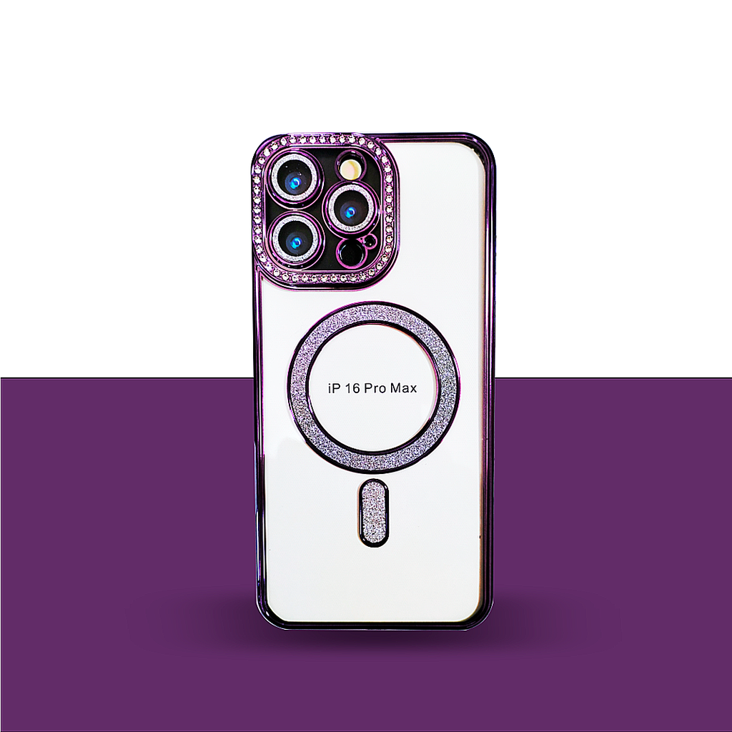Case Características: Soft TPU Silicone rigído premium alto brilho, com revestimento de luxo, Glitter, Strass pedrarias brilhante, Proteção das câmeras, MagSafe carregamento por indução resistente a sujeiras, pra você mulher que tem estilo e bom gosto.